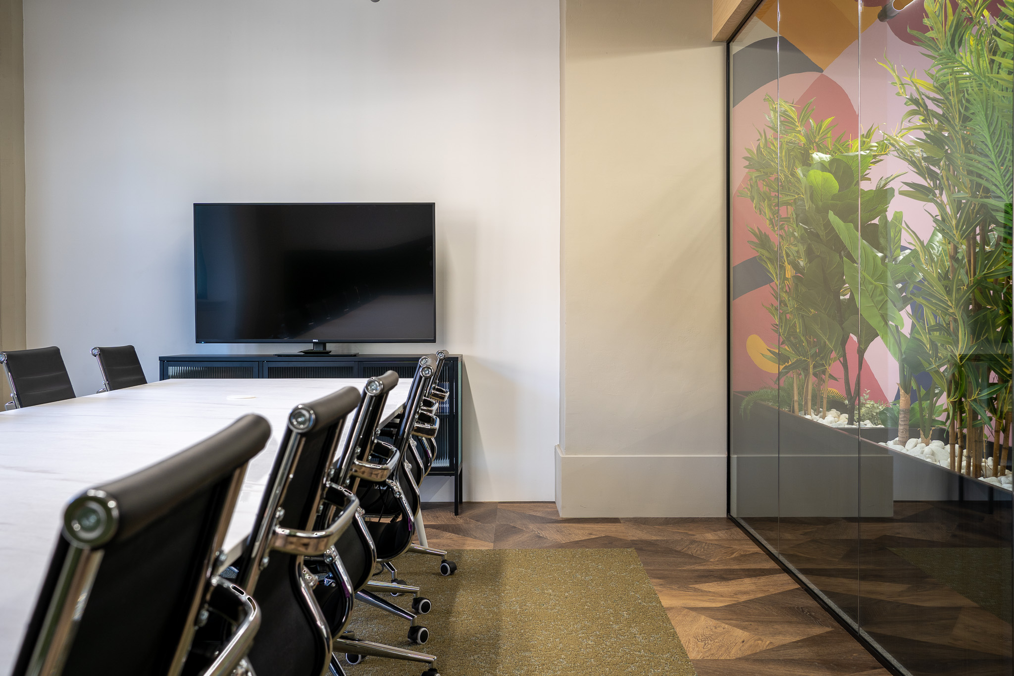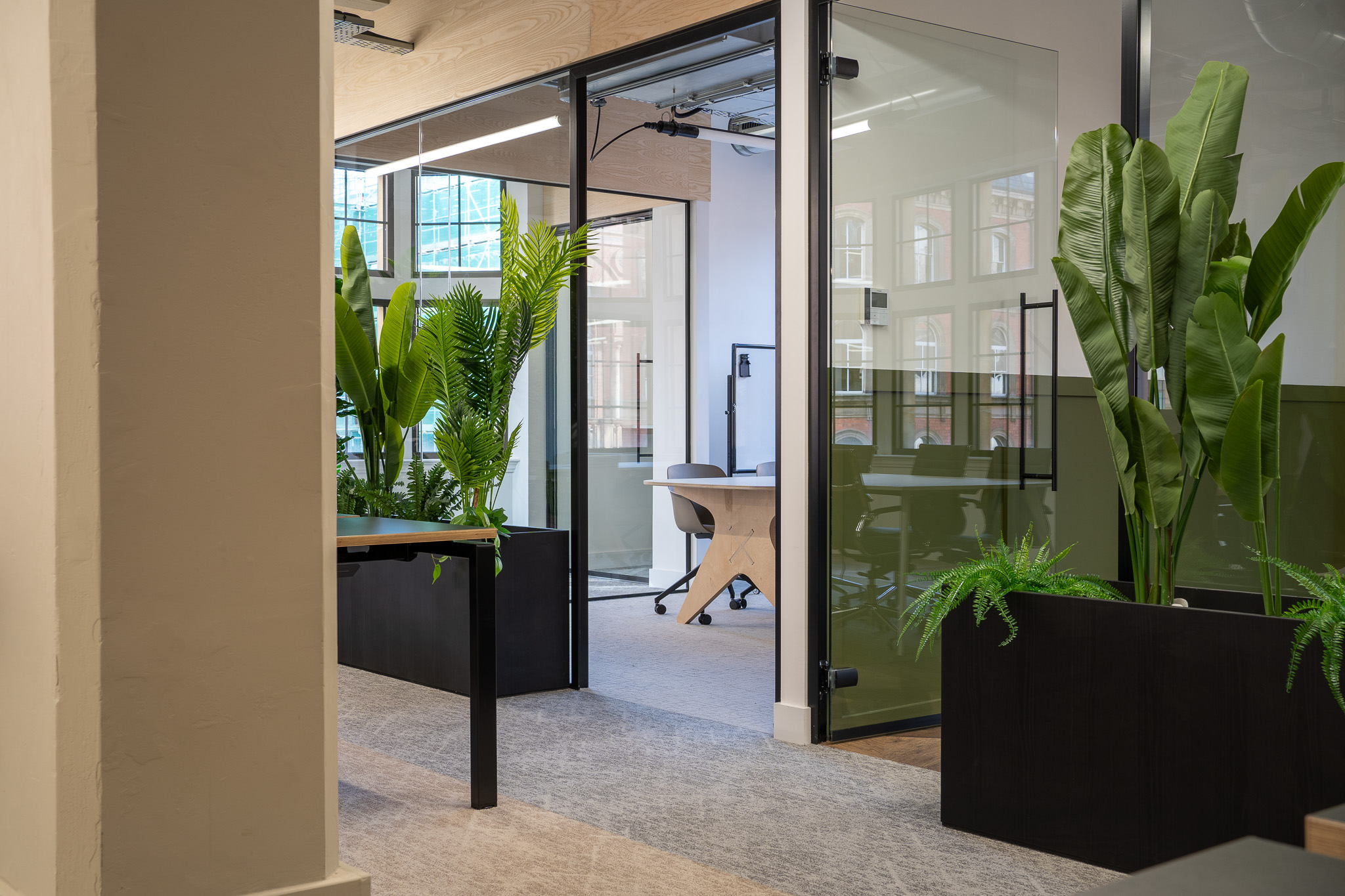 Music Vine, a leading platform in the music licensing industry, commissioned CDT Commercial Ltd to carry out the Category B (Cat B) fit-out for their new office in Leeds, UK. The objective was to create a dynamic and functional workspace that would foster creativity, collaboration, and productivity. The design, by Callum Howie at RE-Vive spaces, perfectly captures Music Vine’s brand identity while providing an environment conducive to both focused work and collaborative tasks.