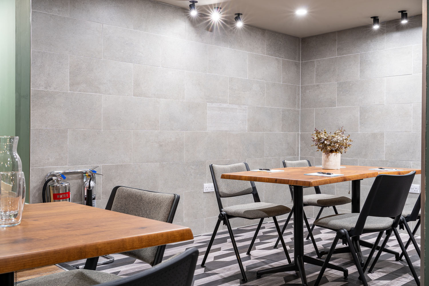 Refurbished with the full works - flooring, a kitchen/bar fitout, audio-visual systems, seating and more - WIZU is fully equipped with everything needed to go from day to night. See the finer details such as feature lighting, exposed brickwork and tiling, all the stuff that make the space its own.